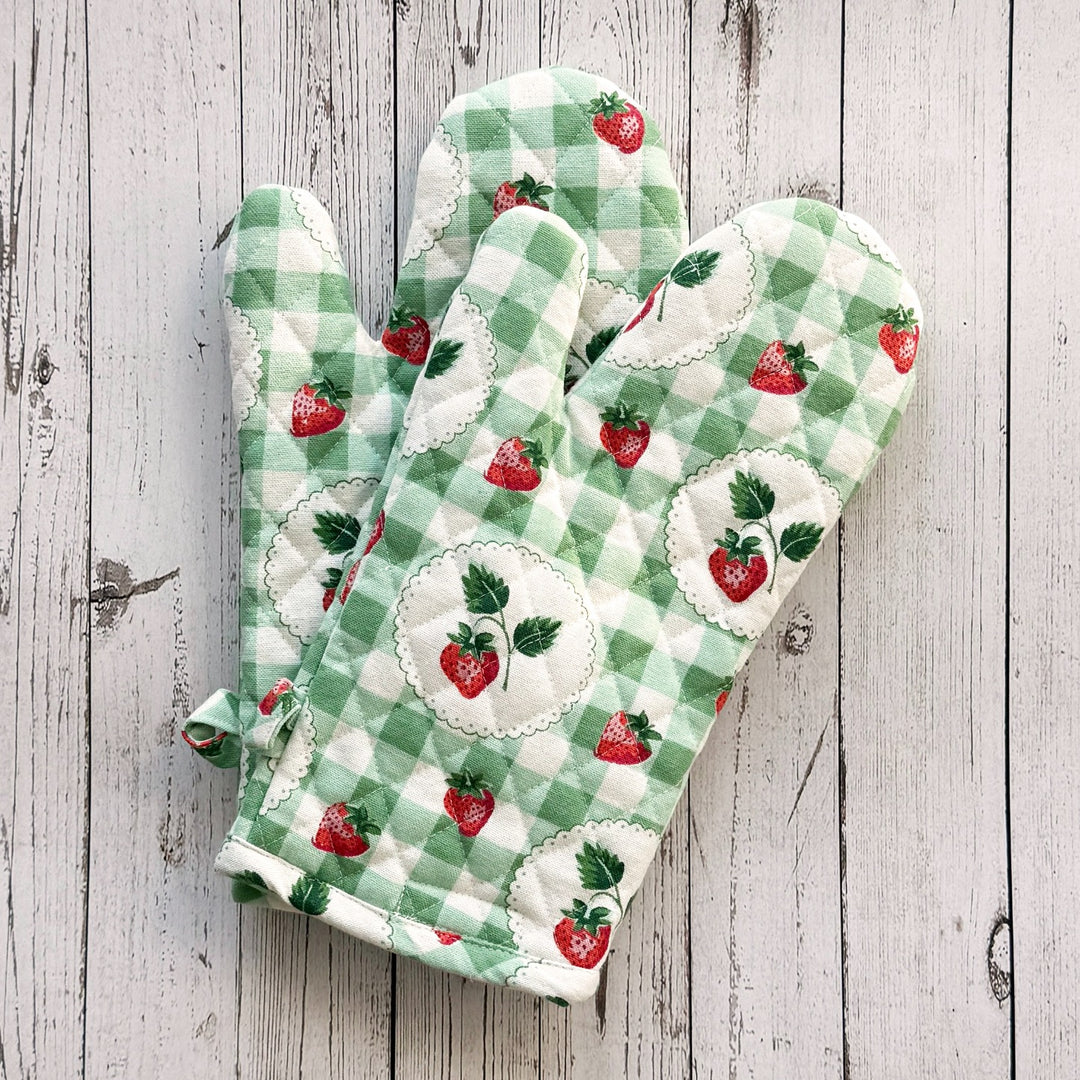 Strawberry Gingham Mitt, Set of 2