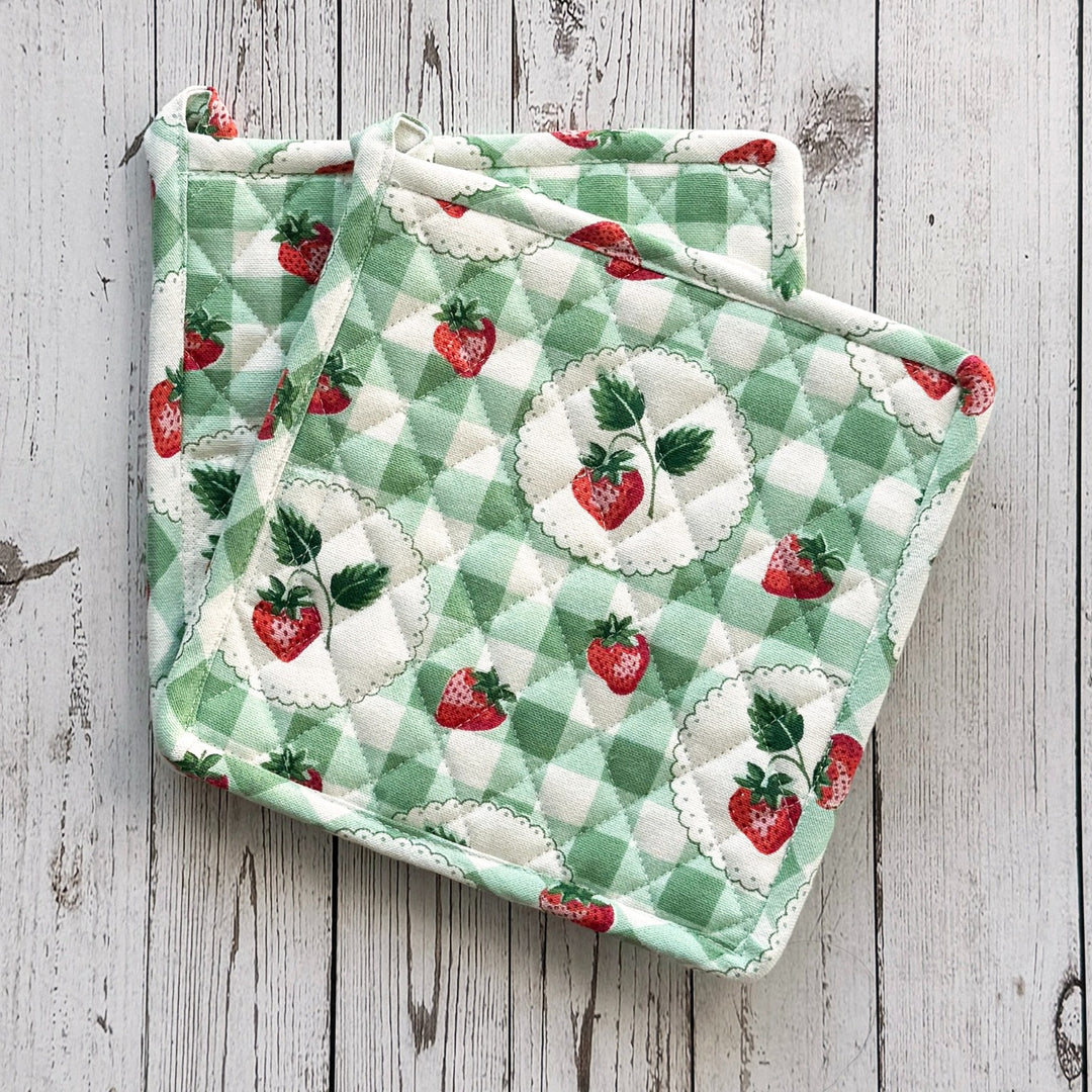 Strawberry Gingham Pot Holder, Set of 2